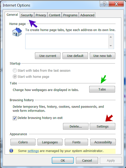- From the Internet Explorer menu, click Tools > Internet Options.