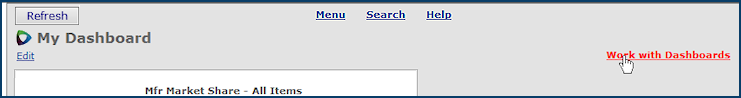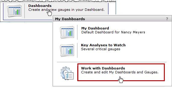 Alternately, if you are working within an existing dashboard, and wish to create another, click Work with Dashboards (Figure 16).