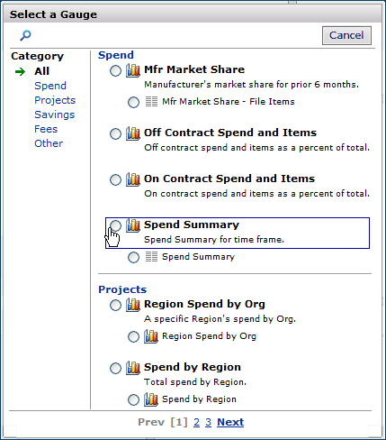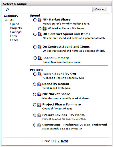 Note: Some gauges are only available for supply item spend; such as project gauges.