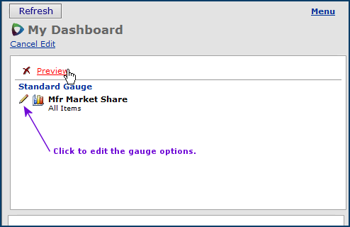 Note: If the Dashboard feature is not enabled for your site, the link Add to Dashboard does not appear on any SCM gauge.
