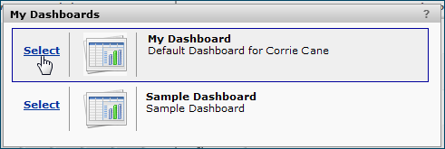 Dashboards are accessible from the My Dashboards link on the page menu (Figure 2).