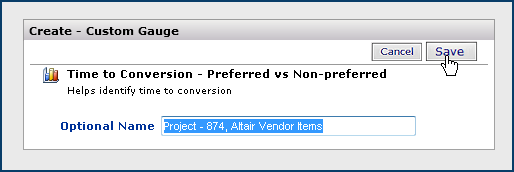 When a project reaches the stage in which contracts have been awarded and conversion rates are being tracked, you can add the conversion gauges to dashboards.