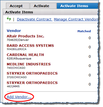 - On the Activate Items panel, lower left-hand side, click Add Vendor. (Figure 19)
