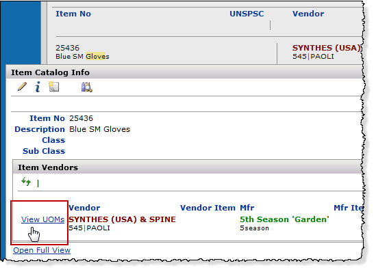- Click View UOMs. A list of units of measure for the item appears (Figure 24).