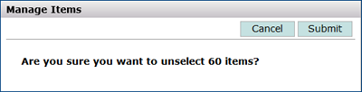 - Click the header again to unselect all items. A dialog box appears with the text: