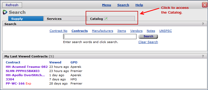 In addition, with Release 7.0.1, the ® Catalog will be available for GPO members who SCA (Supply Chain Advisor). The Catalog is the one source of information from all of your contracts and item master records. This feature requires implementation for a site.