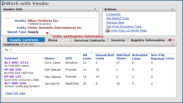 If the vendor is not registered, a note is on the Registry Information panel. In this case, you may wish to register the vendor.