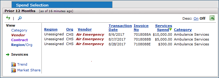 If you are working with supply contract spend, see "Examining Supply Contract Spend."