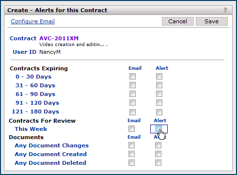 sequential approvals, a cancel approval email and/or alert notification is sent to the approval user whose approval is currently required, and to any users who have already approved the contract.