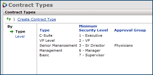 - Services contracts are assigned a type: physician, maintenance, consulting, lease, services, etc.