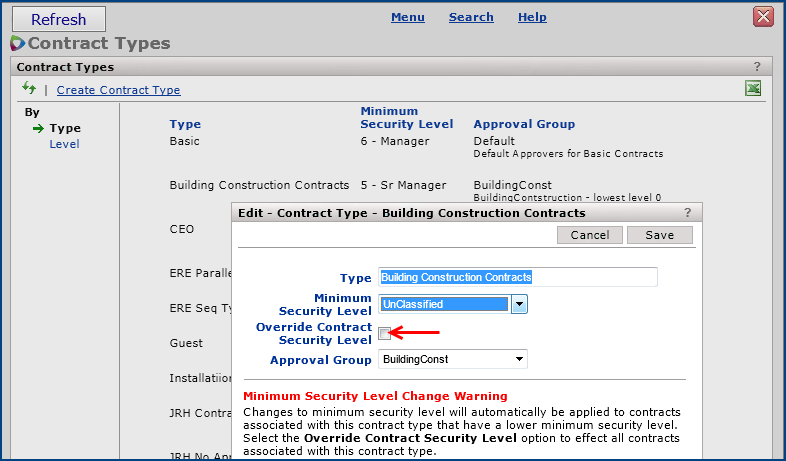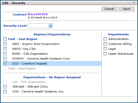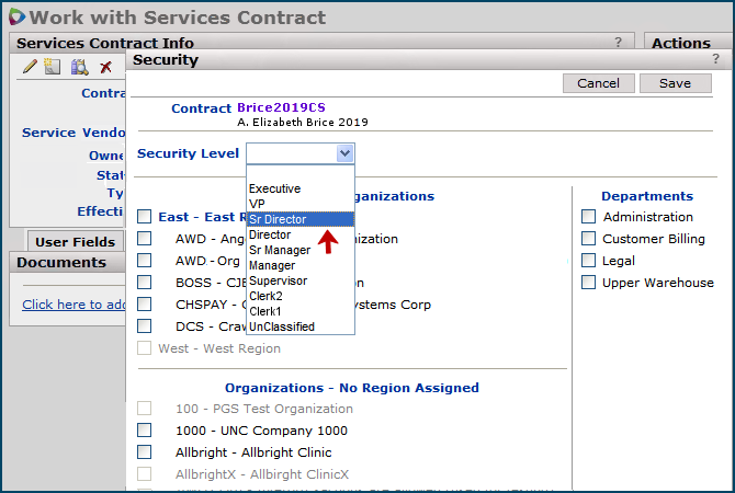 Security levels and services contract types must be defined before you can create services contracts. Initially, these tasks are handled when your system is implemented. However, you can create and maintain security levels and contract types from links on the menu Administration > Tables - Shared Services.
