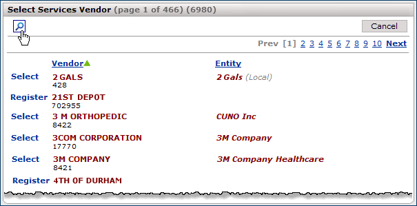 Searching from the "Search" page Services tab and from Supply tab works the same way. See the discussion of search values for valid characters that you can enter in the Search field. As with supply contracts searches, entering All in the Search box for services contracts directs the system to look for all records of the selected type: Contracts, Services Vendors, or Notes.
