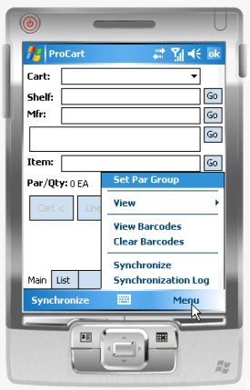 If you wish to change to a different par group and count item quantities in its par carts, you must re-synchronize after you select the par group.