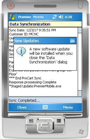 When an update for a mobile application is released, the system automatically applies the update to your hand-held computer when you synchronize the hand-held for the first time after the new release. The process is: