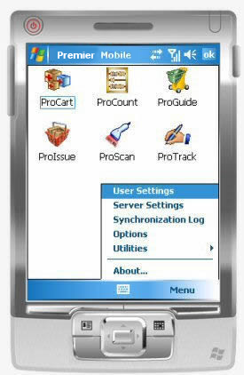 Pressing Menu on the Applications Window provides access to the features: User Settings, Server Settings, Synchronization Log, Options, and Utilities (Figure 9).